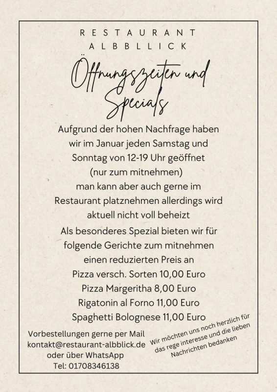 Bleiben Sie auf dem Laufenden: In unserem Restaurant erwarten Sie regelmäßig spannende Events, kulinarische Highlights und besondere Aktionen. Ob Themenabende, saisonale Menüs oder Live-Musik – hier erfahren Sie alle Neuigkeiten rund um Veranstaltungen und aktuelle Angebote.
